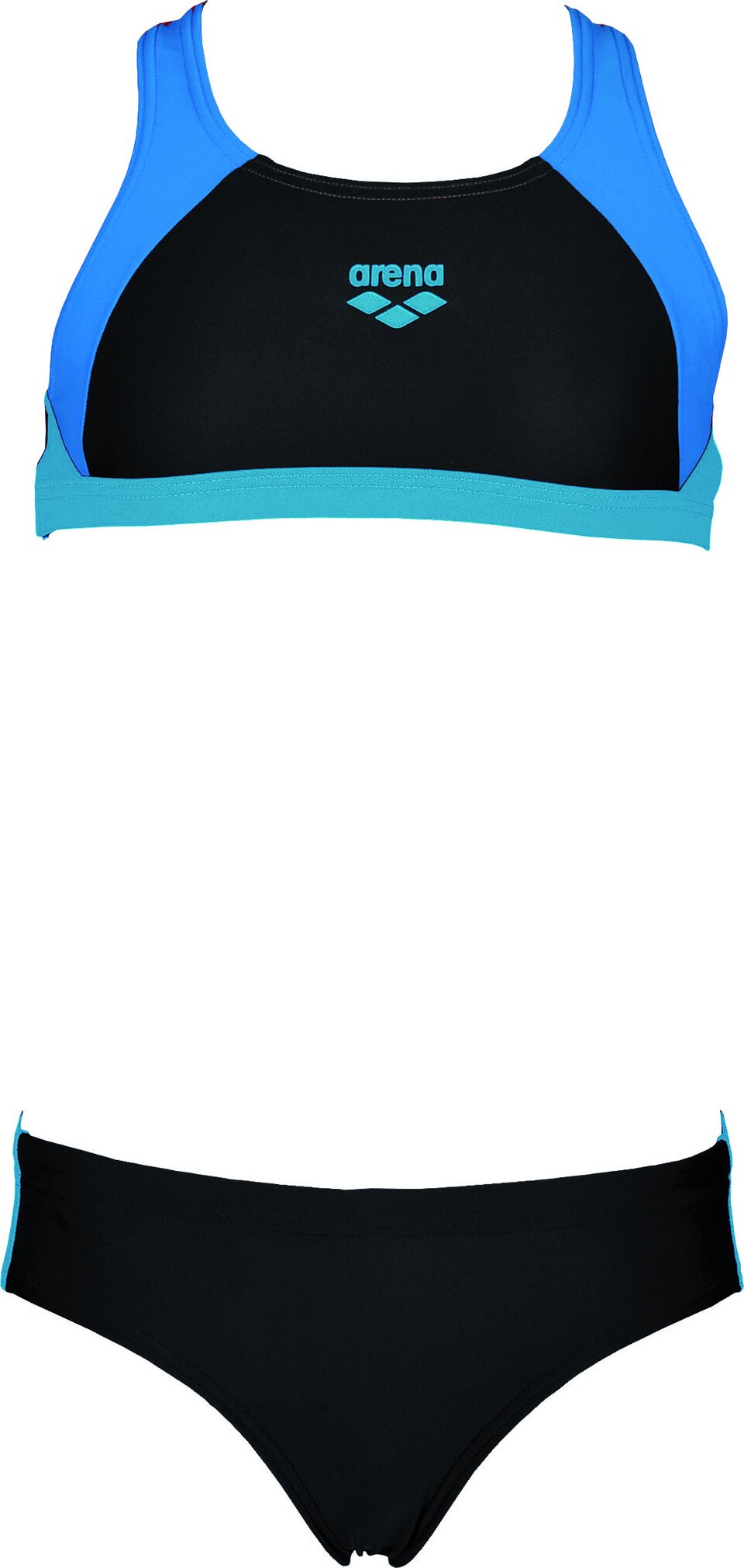 Der arena Sport Bikini Ren für Mädchen ist perfekt geeignet zum Schwimmen und für andere Aktivitäten am Pool und am Strand. Aus chlor- und salzwasserbeständigem MaxFit Material mit integriertem UV-Schutz UPF50+. Dank dem weichen Material mit Elastananteil lässt er sich leicht anziehen und bietet eine optimale, komfortable Passform. Das Bustier mit Ringerrücken und breiten Trägern sorgt für stabilen Halt beim Schwimmen oder bei anderen Aktivitäten am Strand. Die Bikinihose lässt sich über den Kordelzug auf der Innenseite schnell und einfach anpassen.